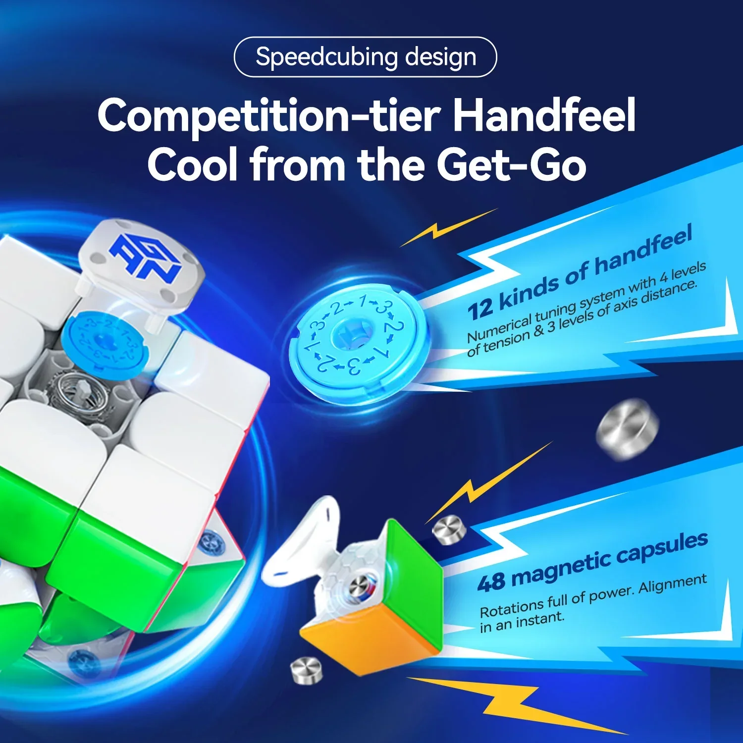 - Magnetic Precision & Tuning - Outfitted with 48 magnetic capsules and 12 levels of tuning, this magnetic speed cube delivers a competition-tier handfeel that’s fast, stable, and customizable to your style. Need help dialing in your setup? Follow the step-by-step tuning guide in the GAN User Manual.